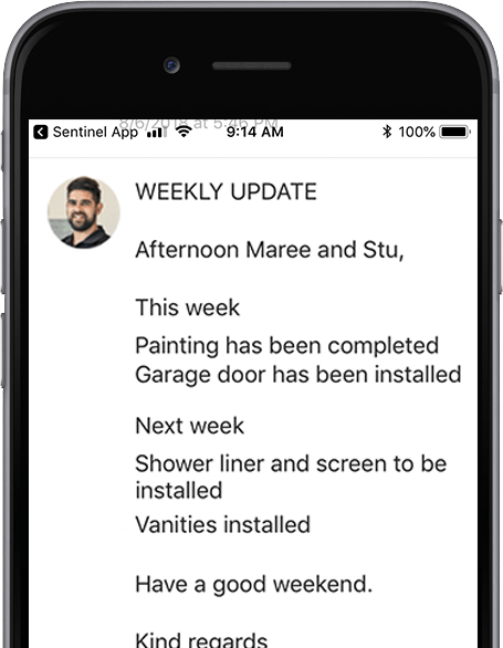 Know what’s next – see at a glance where you’re up to in the build process, and what’s happening next. Your builder may also post up a to do list, so you’ll know what’s happening on site in even more detail.