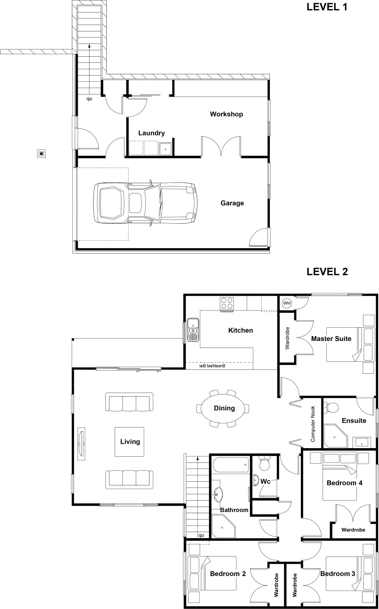 A quintessential family home. On the upperlevel, four bedrooms and two bathrooms border an open-plan living, dining and kitchen area with sliding doors opening onto a well-sized deck. Downstairs features a single garage, laundry and workshop area.