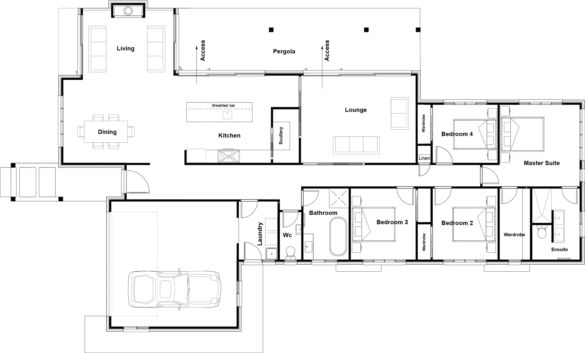 A modern designed single storey home. Four bedrooms, two bathrooms and a spacious living area create the perfect family home. A double garage is the finishing touches to a great family home.
