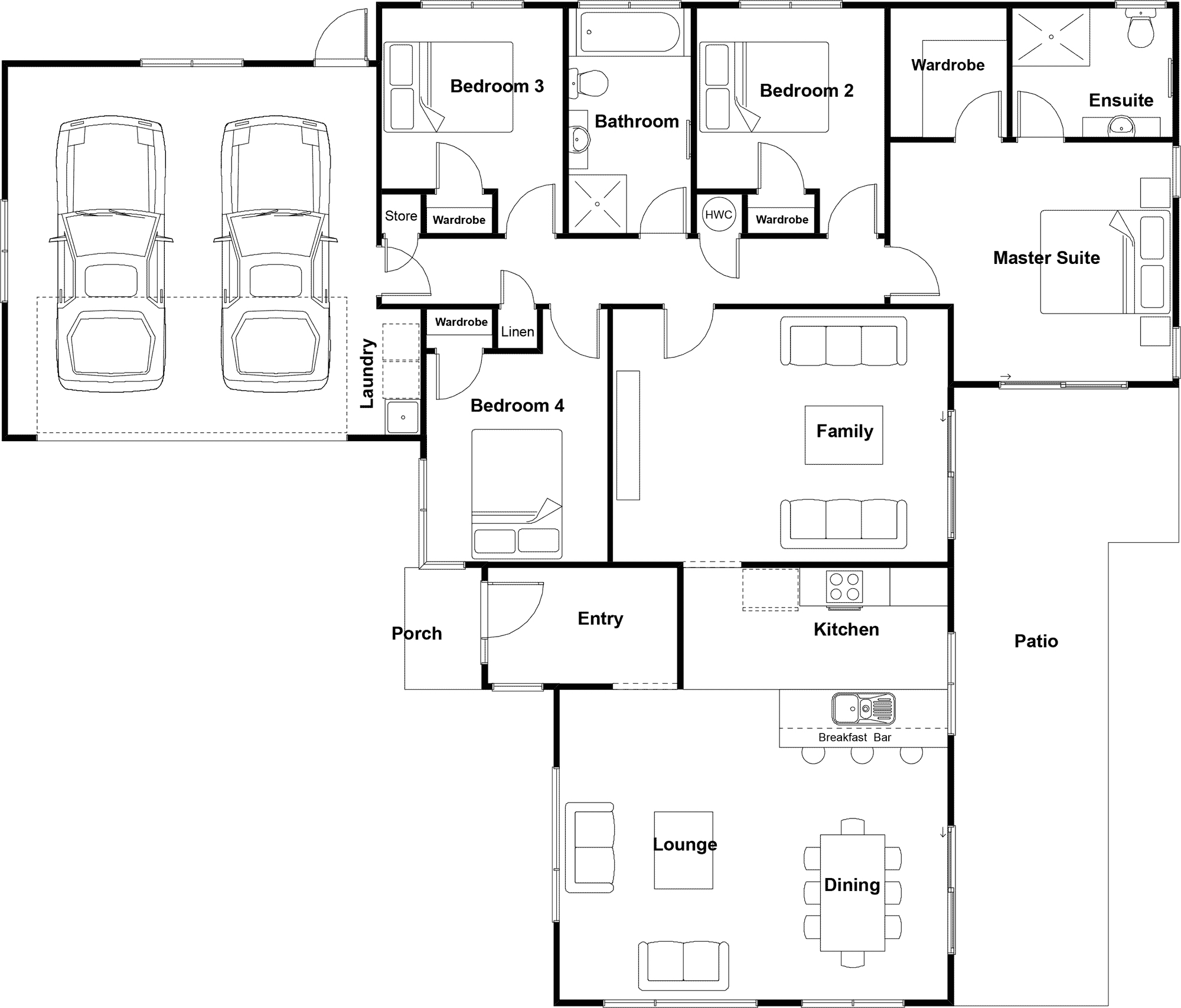 Spacious design and plenty of windows make this home a perfect complement to family living. Features double garage, patio and well-designed kitchen, dining and living area. The four bedrooms include a master suite with ensuite and walk-in wardrobe.